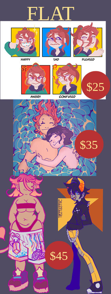 -You are permitted to make edits to your finished piece once you have received it, but you still must provide credit to me as the original artist. You are not permitted to remove my signature, if applicable.-You may not claim my artwork, commissioned or otherwise, as your own.-You may use my art as an avatar/icon for any website as long as credit is given in the form of a link to one of my accounts and a clear statement that the art is mine. This rule excludes commissions of original characters drawn for other people. In this case, you must ask permission of the person that commissioned the piece.-You may only re-upload my art to your own accounts if you have my written permission. This rule excludes commissions of your OCs being posted to toyhou.se. I have given blanket permission for this, provided I am credited (teztastiic).3.Payment