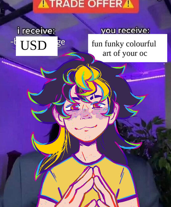 -You are permitted to make edits to your finished piece once you have received it, but you still must provide credit to me as the original artist. You are not permitted to remove my signature, if applicable.-You may not claim my artwork, commissioned or otherwise, as your own.-You may use my art as an avatar/icon for any website as long as credit is given in the form of a link to one of my accounts and a clear statement that the art is mine. This rule excludes commissions of original characters drawn for other people. In this case, you must ask permission of the person that commissioned the piece.-You may only re-upload my art to your own accounts if you have my written permission. This rule excludes commissions of your OCs being posted to toyhou.se. I have given blanket permission for this, provided I am credited (teztastiic).3.Payment